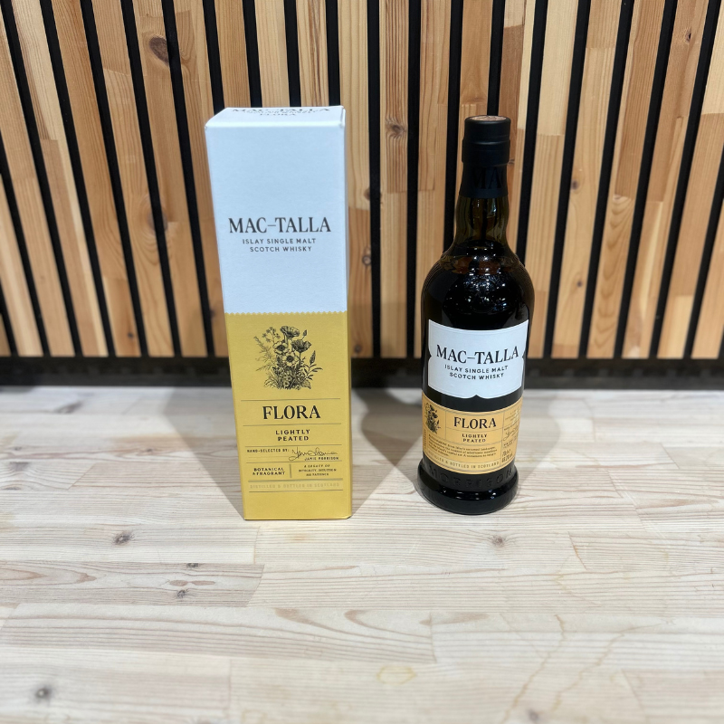 Mac-Talla Flora er en let røget Islay single malt, der bringer friskhed og finesse til den klassiske røgede whiskyoplevelse. Navnet "Flora" afspejler den elegante og blomsterrige karakter, der harmonerer smukt med Islays karakteristiske røg.