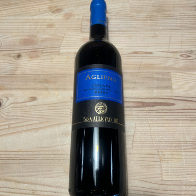 Toscano Rosso Aglieno er en sofistikeret vin lavet af en harmonisk blanding af 75% Sangiovese og 25% Merlot druer. Vinen fremstår med en dyb rubinrød farve og en kompleks bouquet, der fyldes med aromaer af modne røde bær og delikate vaniljenoter. Smagen er varm og smagfuld, med en vedholdende og intens eftersmag, der byder på subtile marmelade- og krydderinoter. Denne vin er ideel til kraftige retter og tilbyder en bemærkelsesværdig smagsoplevelse.