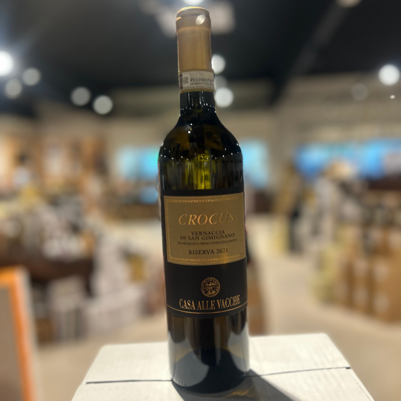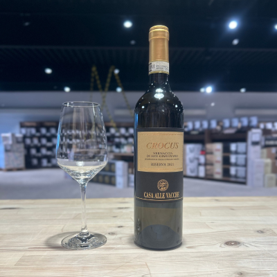 Crocus Vernaccia Riserva 2021 præsenterer sig med en lys strågul farve, der med alderen udvikler elegante gyldne nuancer. Duften er fyldig og indbydende med noter af moden frugt, delikate strejf af hvid peber og et subtilt touch af safran.