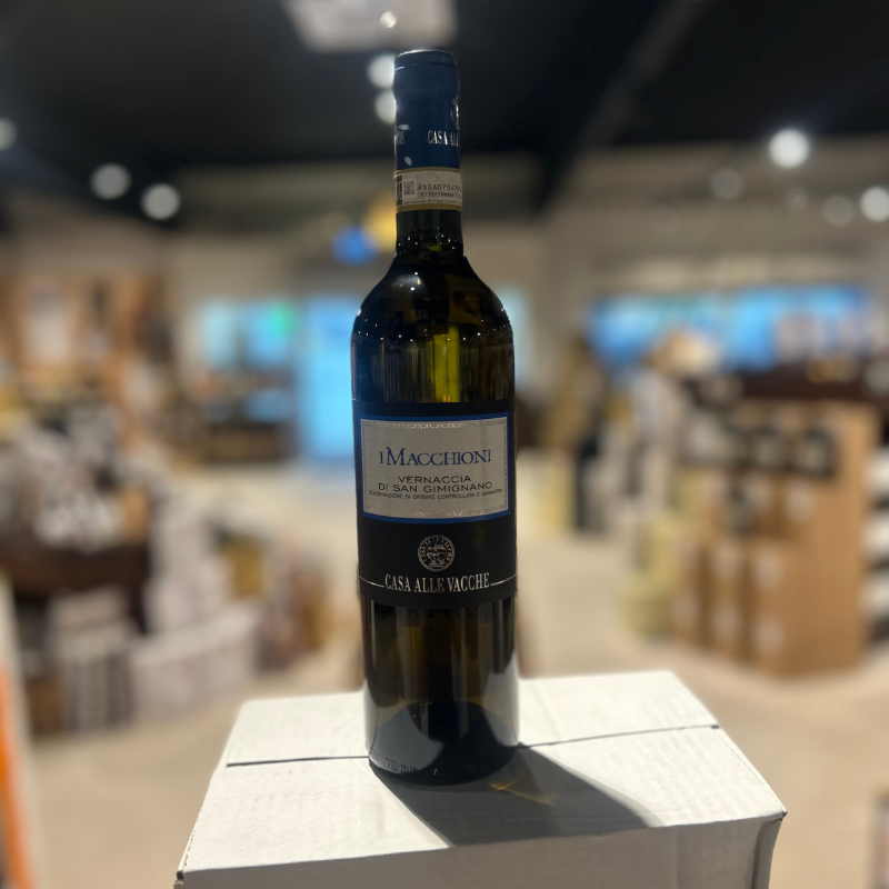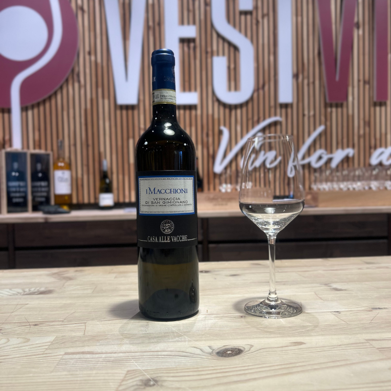 I Macchioni Vernaccia er en frisk og elegant hvidvin med noter af moden frugt, hvide blomster og mineraler. Smagen er tør og harmonisk med en livlig syre og en subtil mandelagtig eftersmag. Perfekt til skaldyr, fisk, hvide kødretter og bløde oste. Serveres ved 10-12°C.