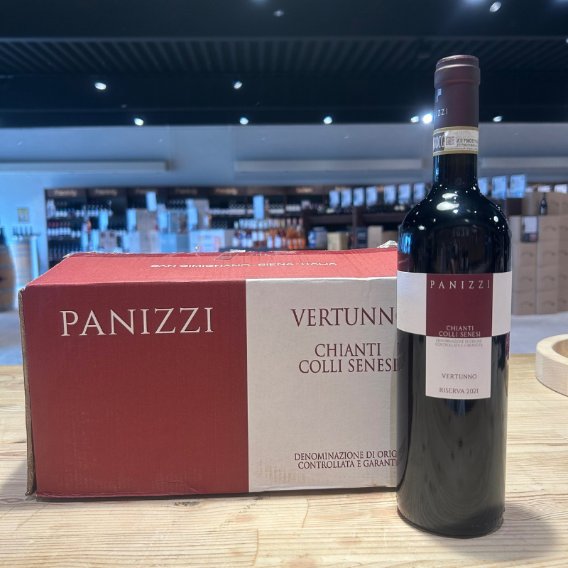 Chianti C. S. Vertunno Riserva Panizzi er en elegant vin, lavet på Sangiovese, Cabernet Sauvignon og Merlot. Den byder på moden rød frugt, søde krydderier og silkebløde tanniner. Perfekt til bøf, grillet kød og lagrede oste. Lagringspotentiale på op til 10 år.