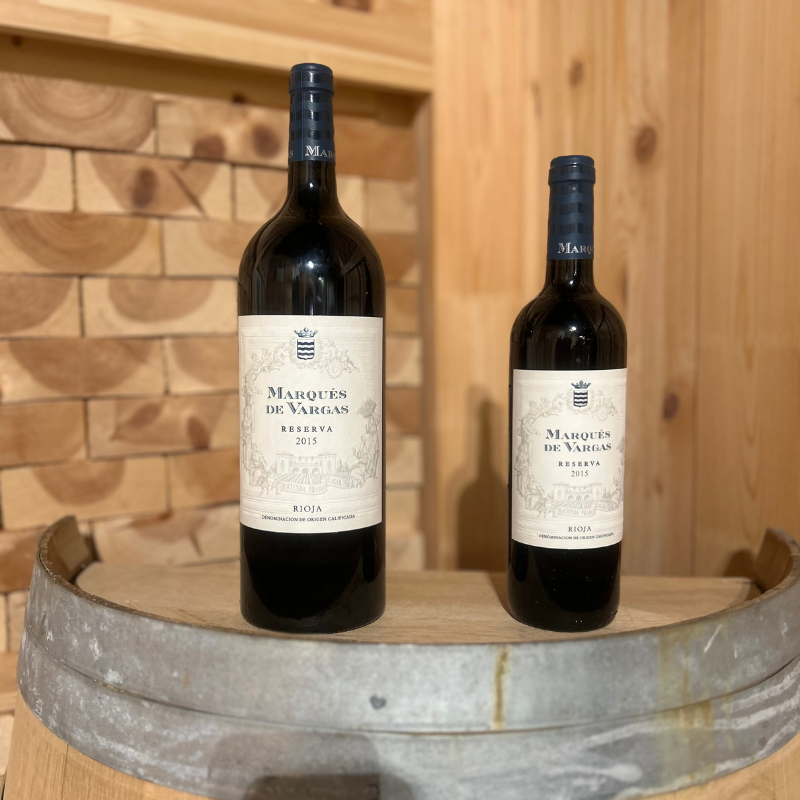 Marques De Vargas Reserva 2015 MAGNUM er en imponerende spansk rødvin, der udstråler elegance og kompleksitet. Marqués de Vargas Reserva 2015 er en blend af de klassiske Tempranillo (80%), Mazuelo (15%) og Garnacha (5%). Det er druesorter, som er typiske for regionen. Vinen har gennemgået en omhyggelig modning på egetræsfade i 18 måneder, hvilket giver den dybde og struktur.
