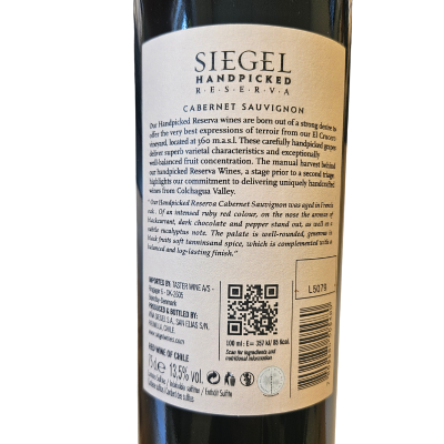 Oplev den dybe, kraftfulde karakter af Cabernet Sauvignon fra det prisvindende Viña Siegel i Colchagua Valley. En vin skabt til dig, der elsker struktur, intensitet og elegance.