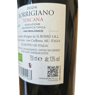 Borrigiano er en vin lavet på Sangiovese og Cabernet Sauvignon fra Il Borros økologiske marker. Den byder på friske noter af kirsebær, blommer og krydderurter, med en livlig smag og saftig frugtsyre. Perfekt til pasta, grillet vildt og ragù alla Bolognese.