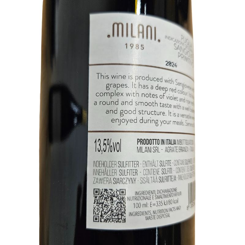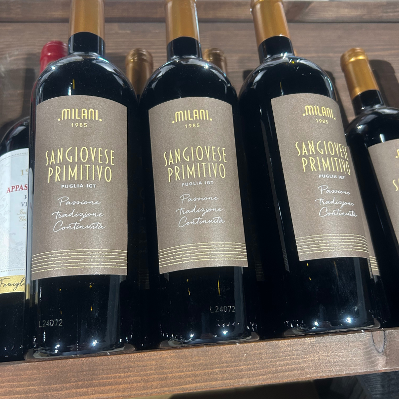 Milani rødvin kombinerer det bedste fra Italiens vintraditioner. Sangiovese, den ikoniske rødvinsdrue, møder Primitivo, en stjerne på fremmarch, kendt for sin karakter og kvalitet.