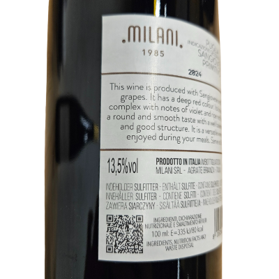 Perfekt til madoplevelser Den alsidige Milani rødvin er ideel til lette retter, kolde anretninger, pizza, pasta og milde oste. Nyd den ung for dens friske og livlige karakter.